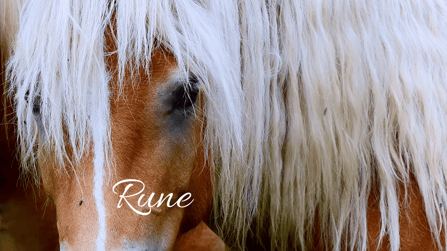 Rune is a short, sturdy tan horse with a long white and black mane. He has a sweet temperament which can sometimes be taken advantage of by the wrong people.